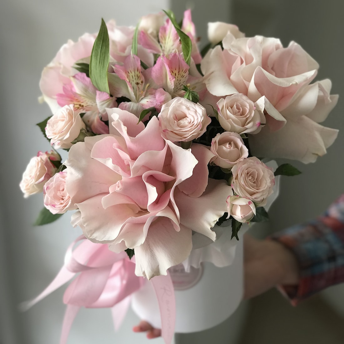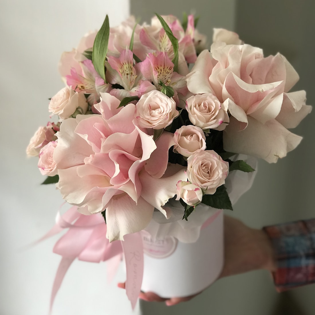 Состав букета: Букет из Розовой французской Розы 3 шт, Кустовой Розы 2 шт, Альстромерии 1 шт, Писташь 1шт