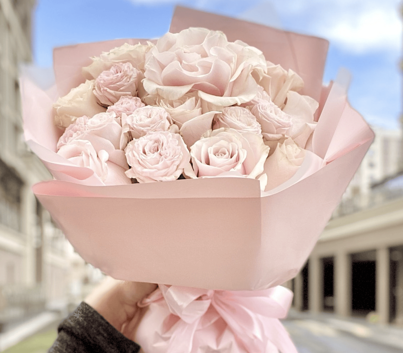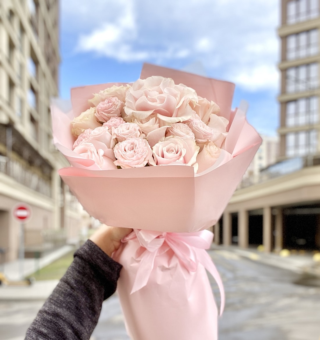 Каждый элемент букета тщательно подобран, чтобы создать гармоничную и утонченную композицию. Французская роза придаёт букету нотку роскоши, кустовые розы добавляют объём и текстуру, а микс роз создаёт яркий и насыщенный цветовой акцент. Пистошь завершает композицию, придавая ей свежесть и естественность.