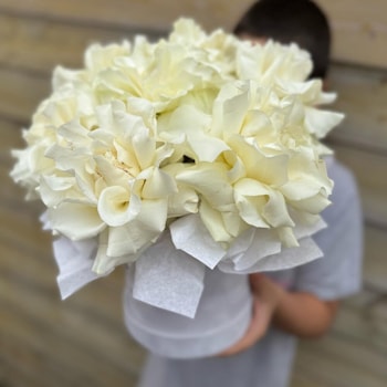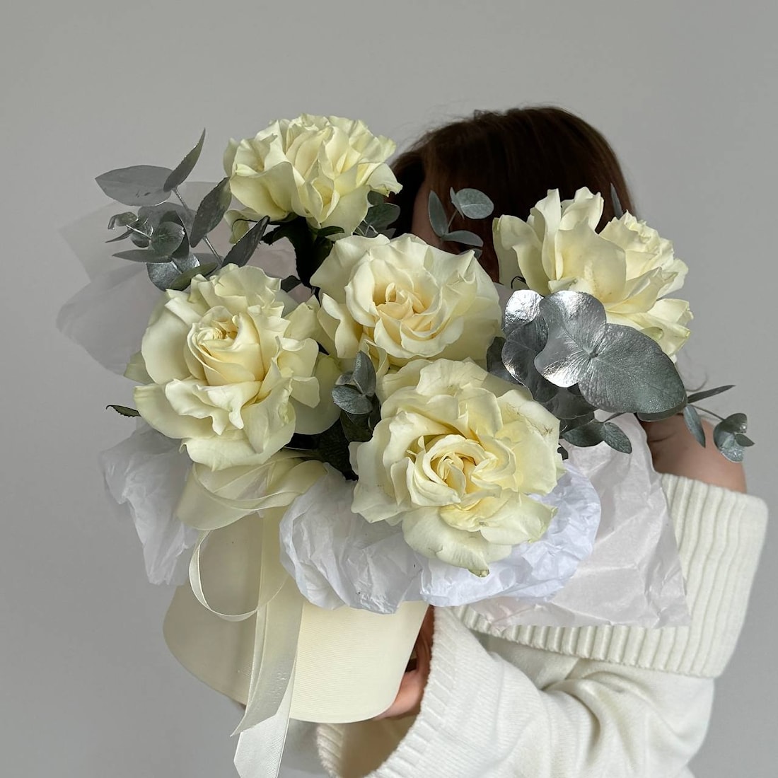 Элегантная композиция из 5 белоснежных французских роз, воплощающая изысканность и утонченность Парижа. Каждая роза раскрывается идеально — словно напоминание о нежности и чистоте чувств.