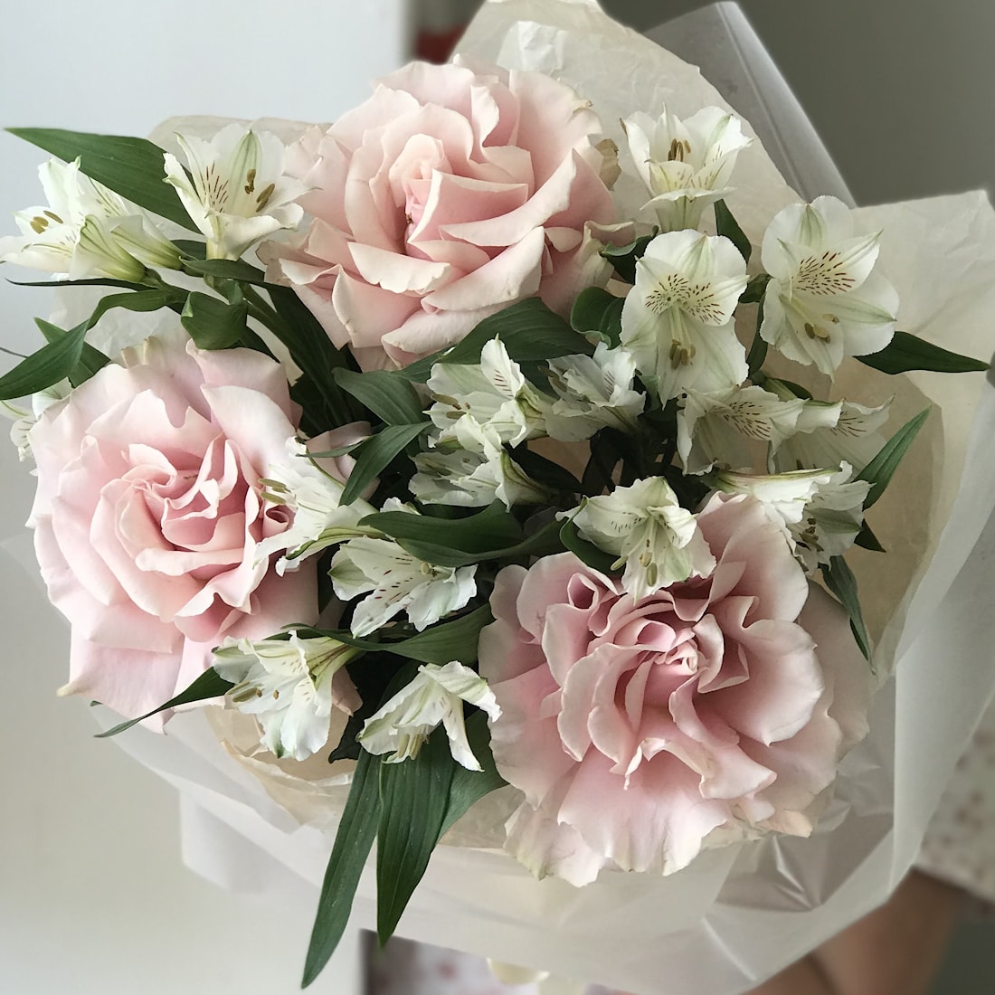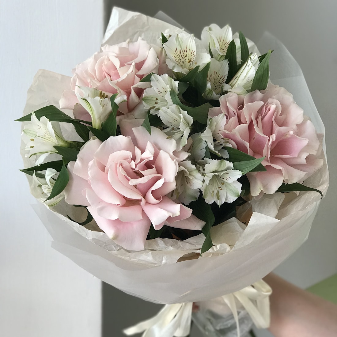 Утончённая композиция из 3 розовых французских роз и изящных альстромерий. Розы символизируют любовь и внимание, а альстромерии добавляют лёгкость и нежность. Такой букет станет прекрасным подарком для любимой женщины, подруги, коллеги или мамы — он выражает заботу, теплоту и искренние чувства.