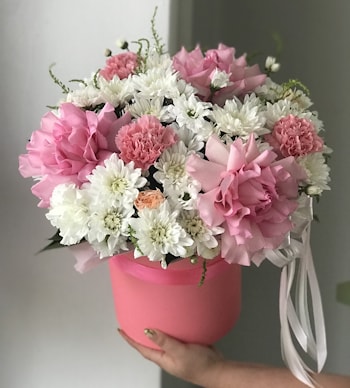 Если вы хотите купить в Полоцке или Новополоцке букет в шляпной коробке " Ромашка "  , вы можете