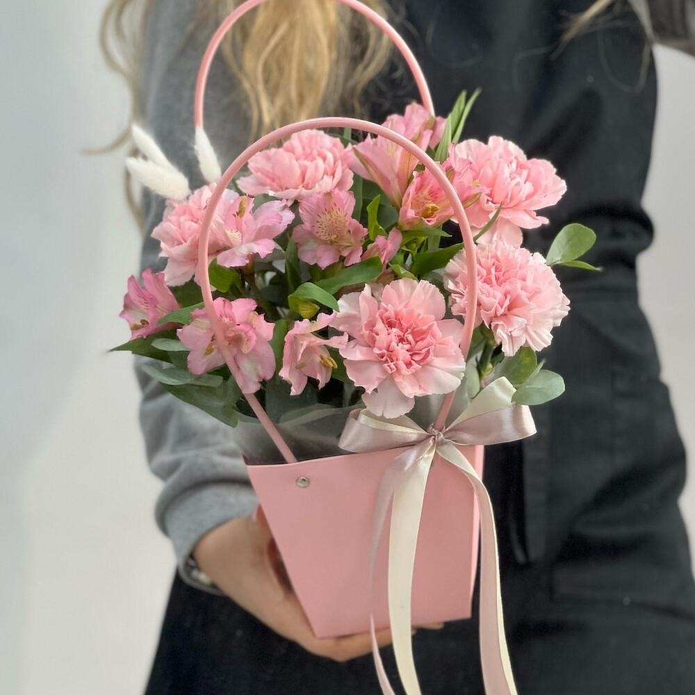 Закажите цветочную сумочку с диантусами и альстромериями с доставкой по Полоцку и Новополоцку — и подарите радость, которая останется в сердце надолго!