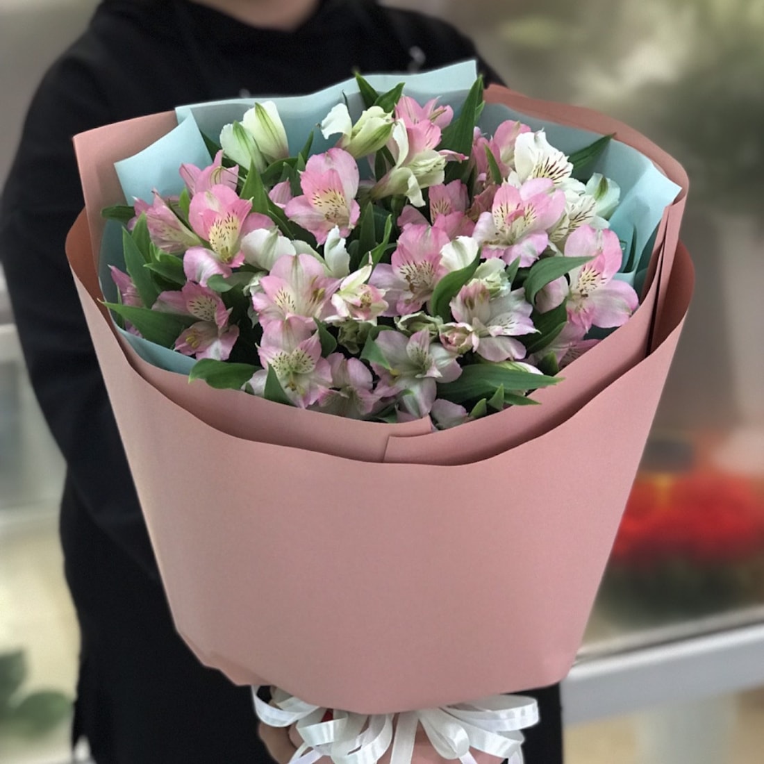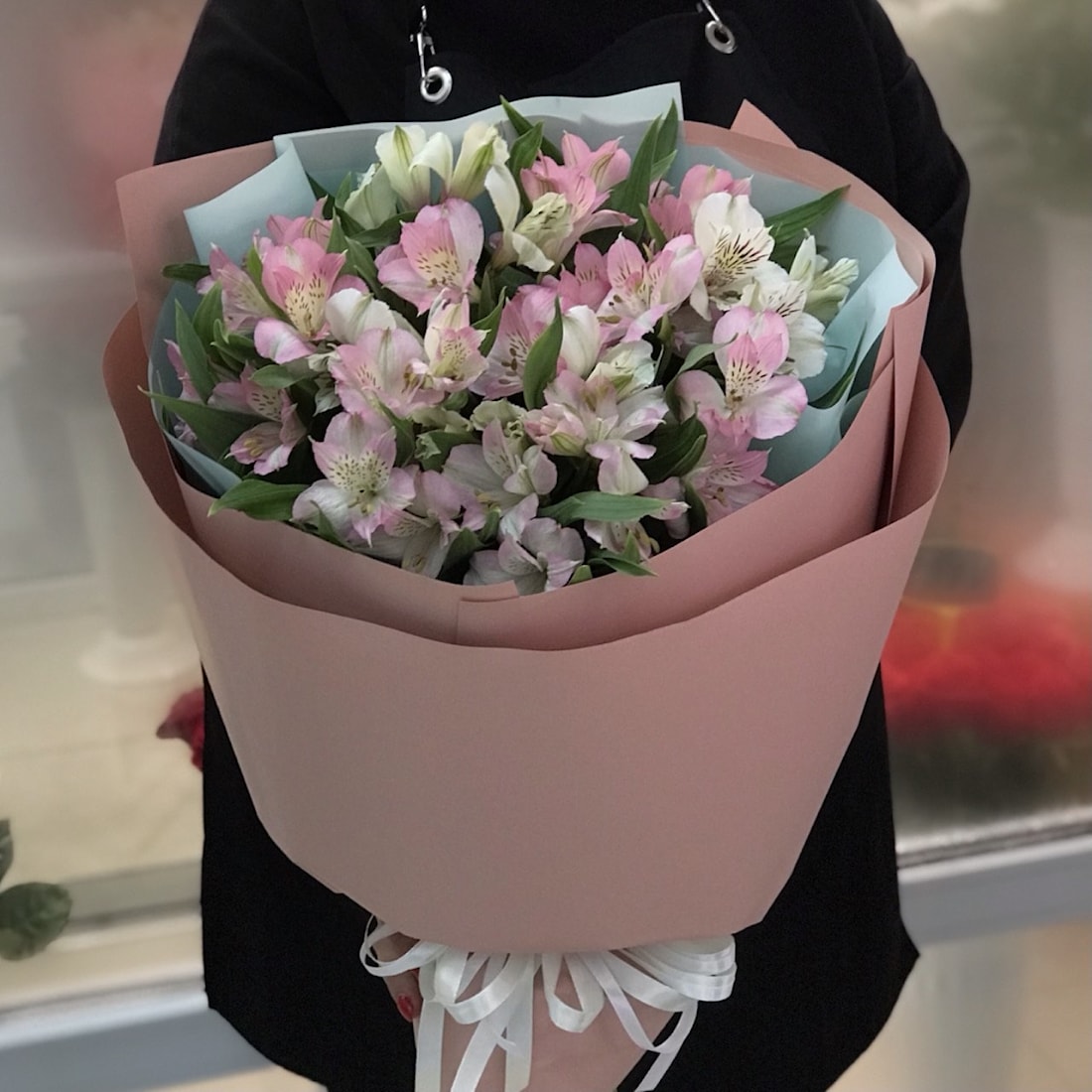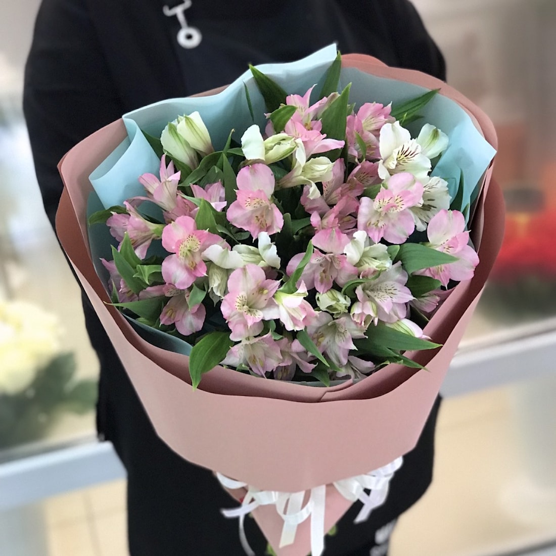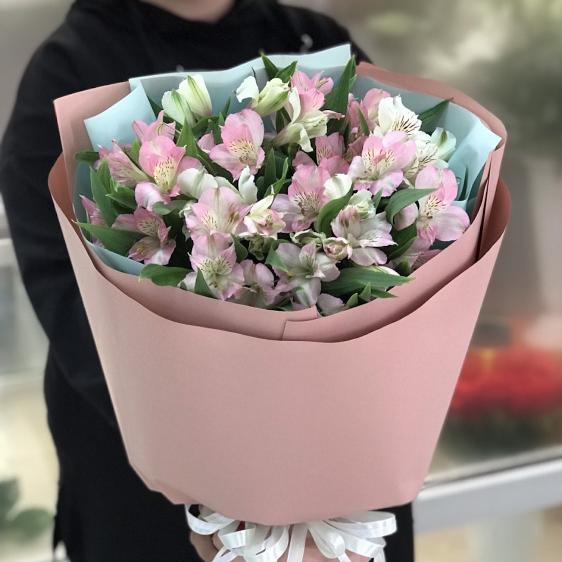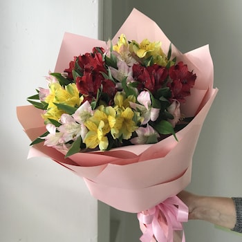 Букет "Альстромерия" с доставкой в Полоцке и Новополоцке, это букет из цветов, которые по форме напоминают лилию, но его лепестки расположены асимметрично, как у орхидеи. Удивительный цветок давно завоевал сердца флористов и все больше обретает поклонников среди покупателей.
