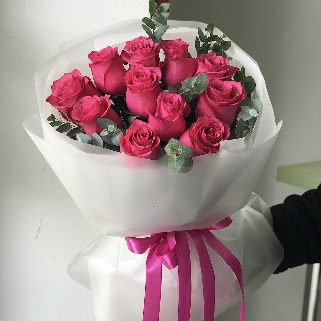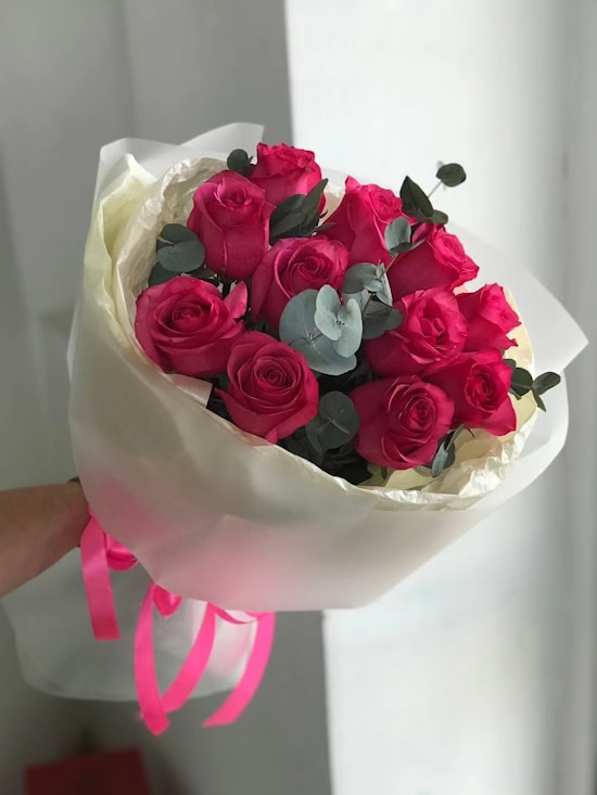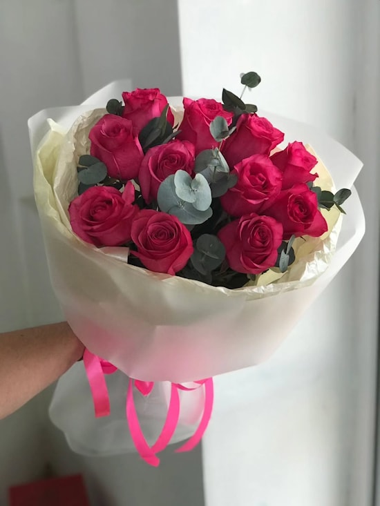 .Букет из 11 малиновых роз в стильной упаковке — это гармония элегантности и страсти. Яркий малиновый оттенок символизирует восхищение, романтику и вдохновение, а утончённая упаковка подчёркивает изысканный вкус. Такой букет станет прекрасным подарком для выражения чувств, создания праздничного настроения или просто как знак внимания.