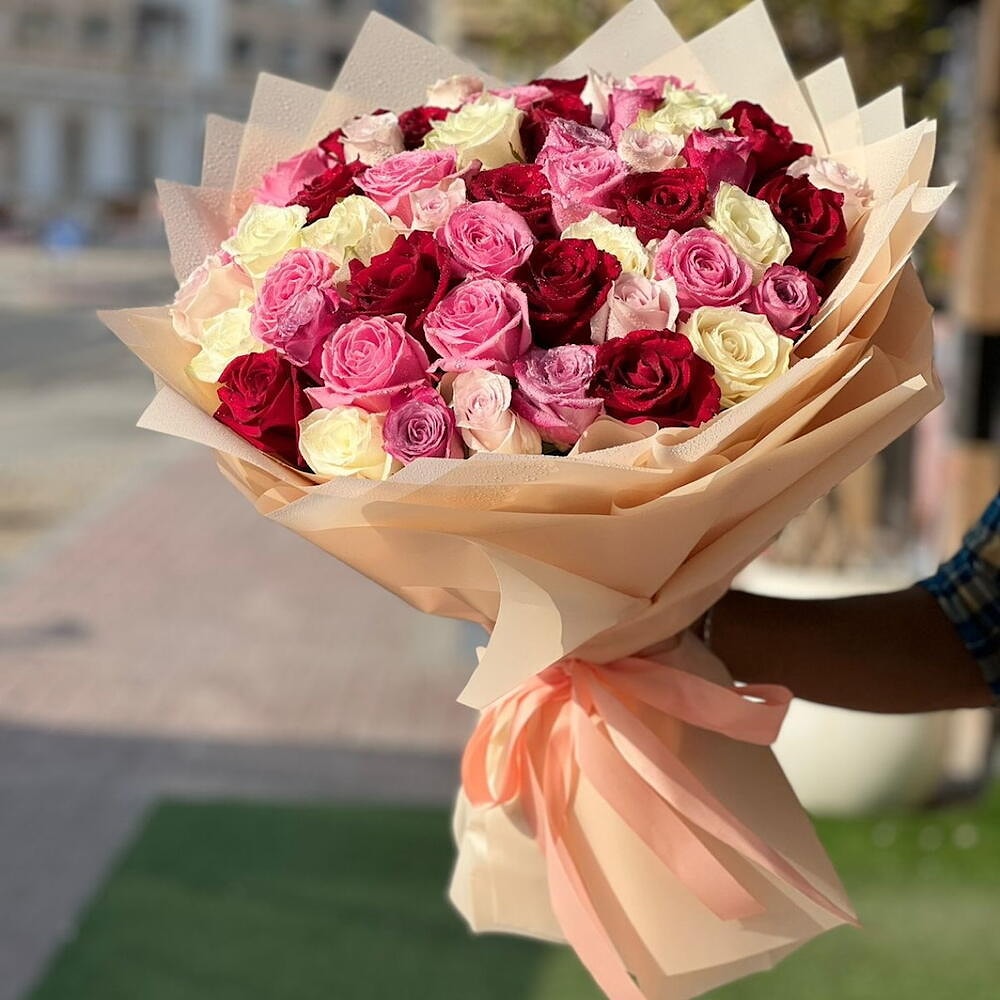 Букет из 51 розы микс — это яркий калейдоскоп эмоций, воплощение любви, нежности и радости в одном. Разноцветные розы создают праздничное настроение и подходят для любого повода: день рождения, годовщина, признание в любви или просто знак внимания.