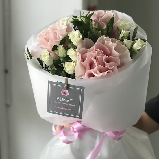Элегантная цветочная композиция из трёх французских роз, трёх кустовых роз и нежной альстромерии, оформленная в современной стильной упаковке. Букет выглядит воздушным и гармоничным, сочетая изящество классических роз с лёгкой живостью альстромерии. Идеальный выбор для красивого комплимента, который говорит о внимании и вкусе без лишних слов.