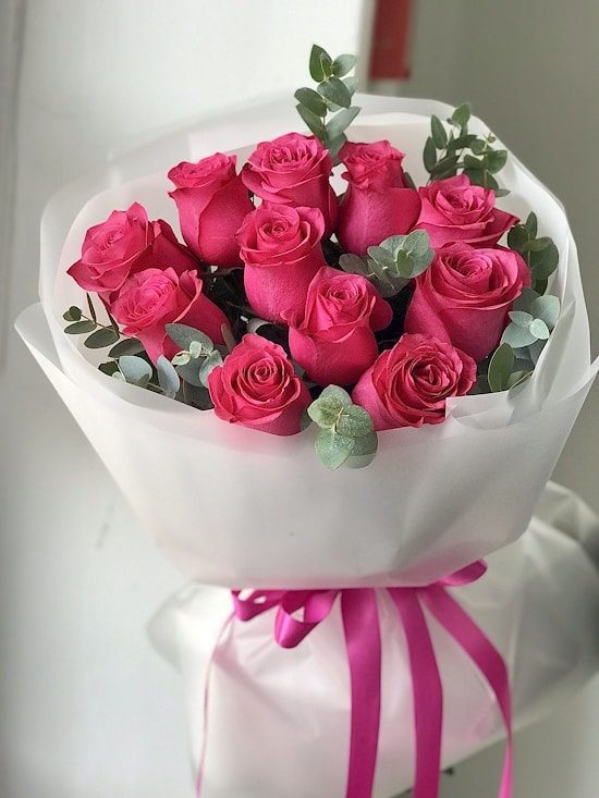Состав букета: розы 11 шт, эвкалипт
