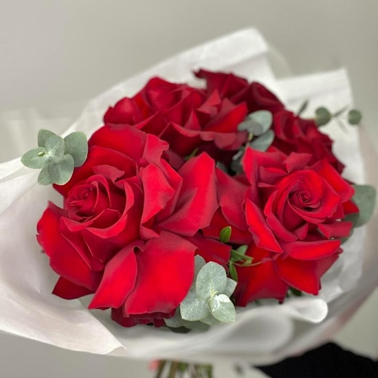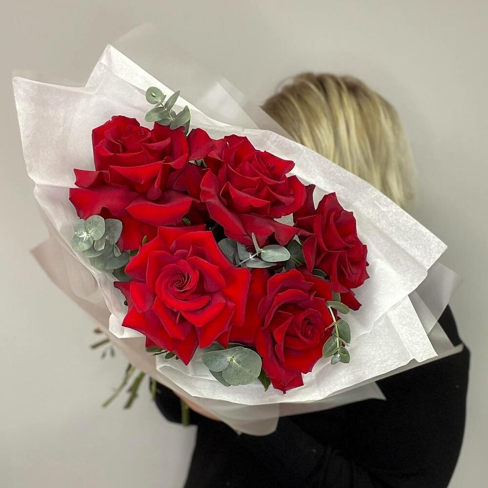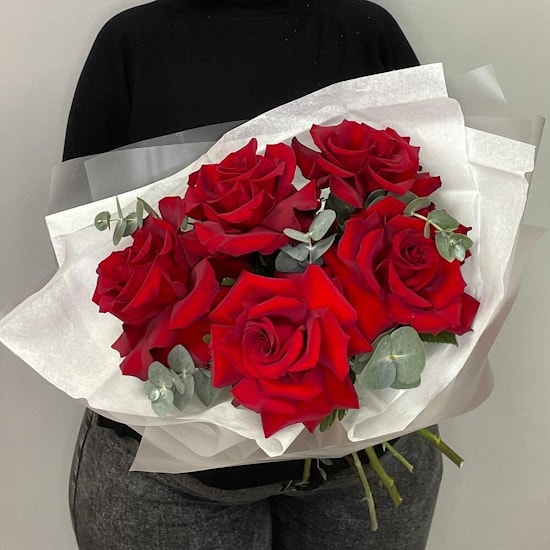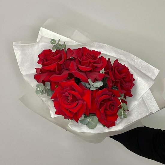 Состав букета: Роза французская - 5 шт, эвкалипт или другая зелень.
