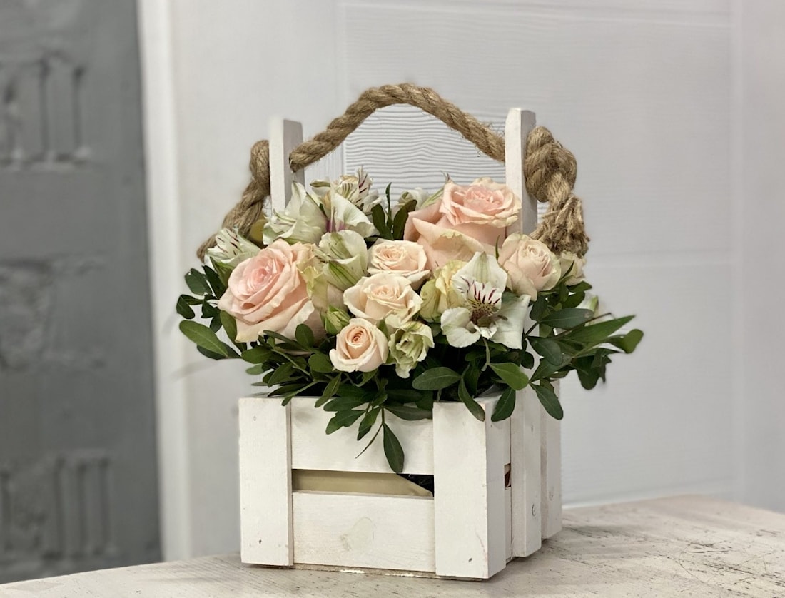 Состав: Розовая Роза, Кустовая Роза и Альстромерия