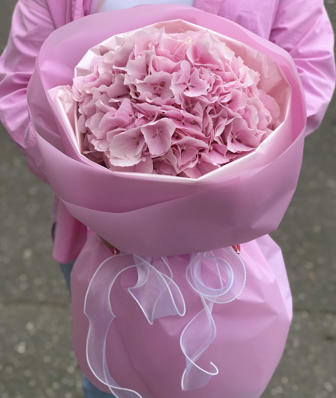 ✨ Букет с розовой гортензией – это нежность и утонченность в каждом лепестке. Объемные воздушные соцветия розовой гортензии создают эффект легкости и романтики, напоминая сладкий зефир. Такой букет станет идеальным подарком для девушки, жены, мамы или подруги – он подчеркнет нежные чувства и создаст атмосферу счастья.