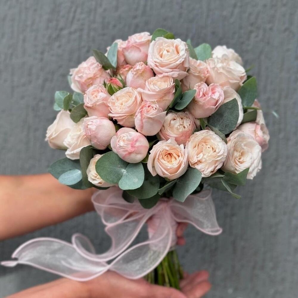 Свадебный букет с кустовыми розами Бомбастик — утонченность и романтика в каждом лепестке!
