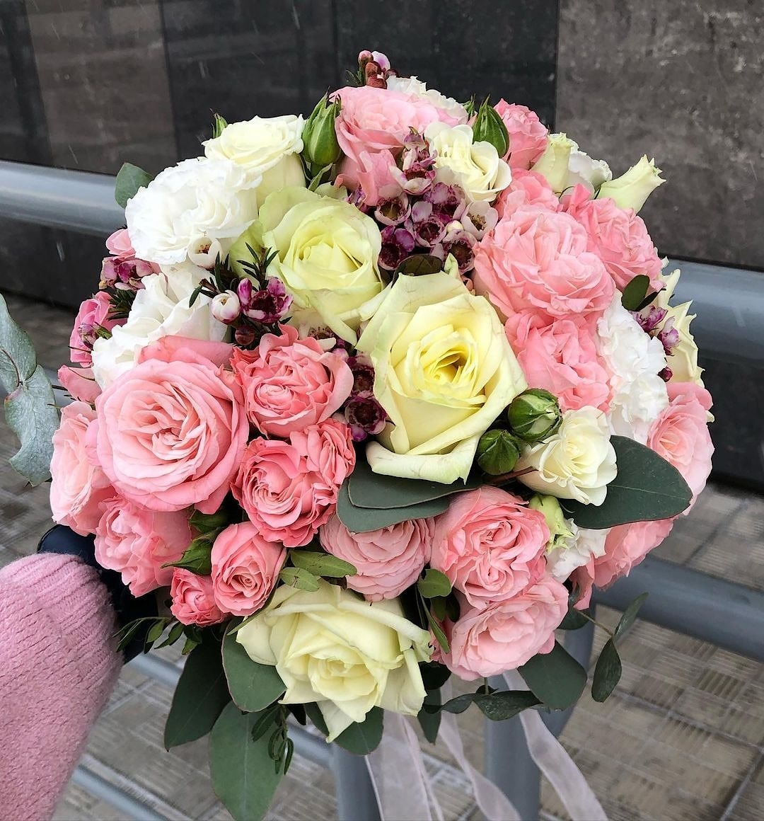 Великолепный свадебный букет "Живой" невесты из роз, подарит уверенность в себе на свадебной церемонии!