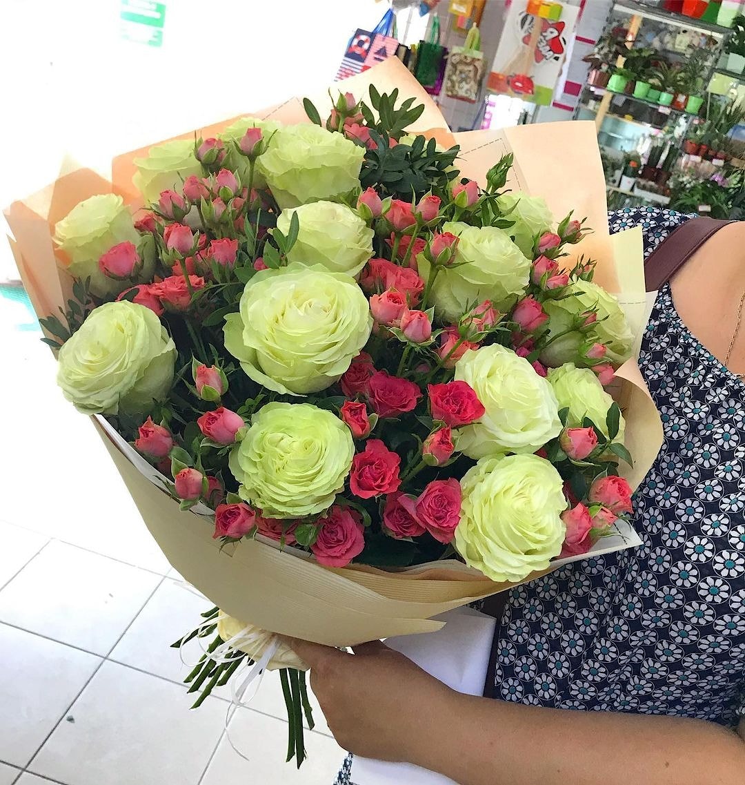 Цветы "№0" – это Белая Роза и Розовая Кустовая Роза в окружении изящной бежевой упаковки. Которые будто вышли из прекрасного сна, настолько красиво выглядит этот букет. Упаковка круглой формы, натурального цвета подчеркивает прелесть букета, смотрится современно и добавляет букету №0 эффектности.