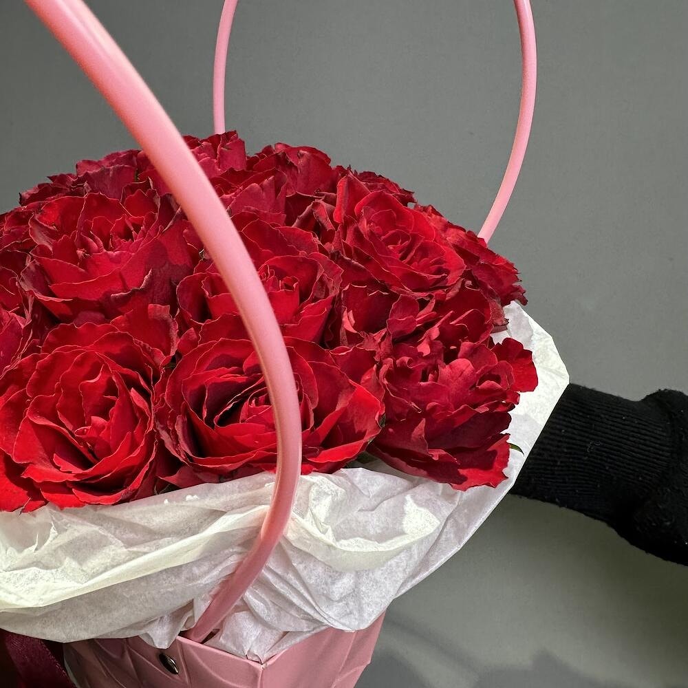 Стильная, элегантная и абсолютно незабываемая — цветочная сумочка из 15 красных роз покорит сердце с первого взгляда.