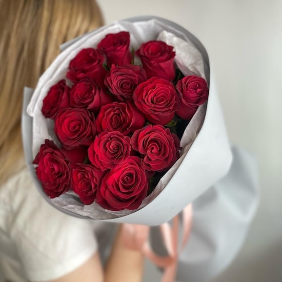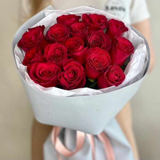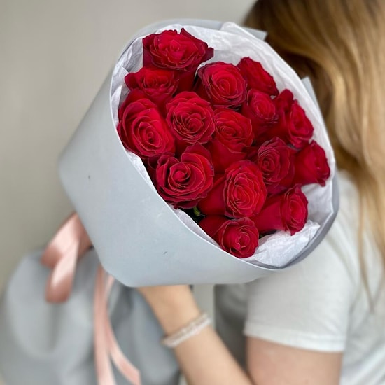 Букет из 15 красных роз в стильной упаковке — классика, которая никогда не выходит из моды. Элегантное оформление подчеркивает роскошь премиальных алых бутонов. Такой букет — совершенный выбор, когда хочется выразить любовь, восхищение или сделать эффектный подарок.