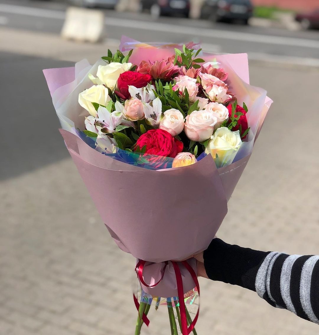 Состав и цветовая гамма композиции может изменяться в зависимости от сезона и наличия цветов в магазине