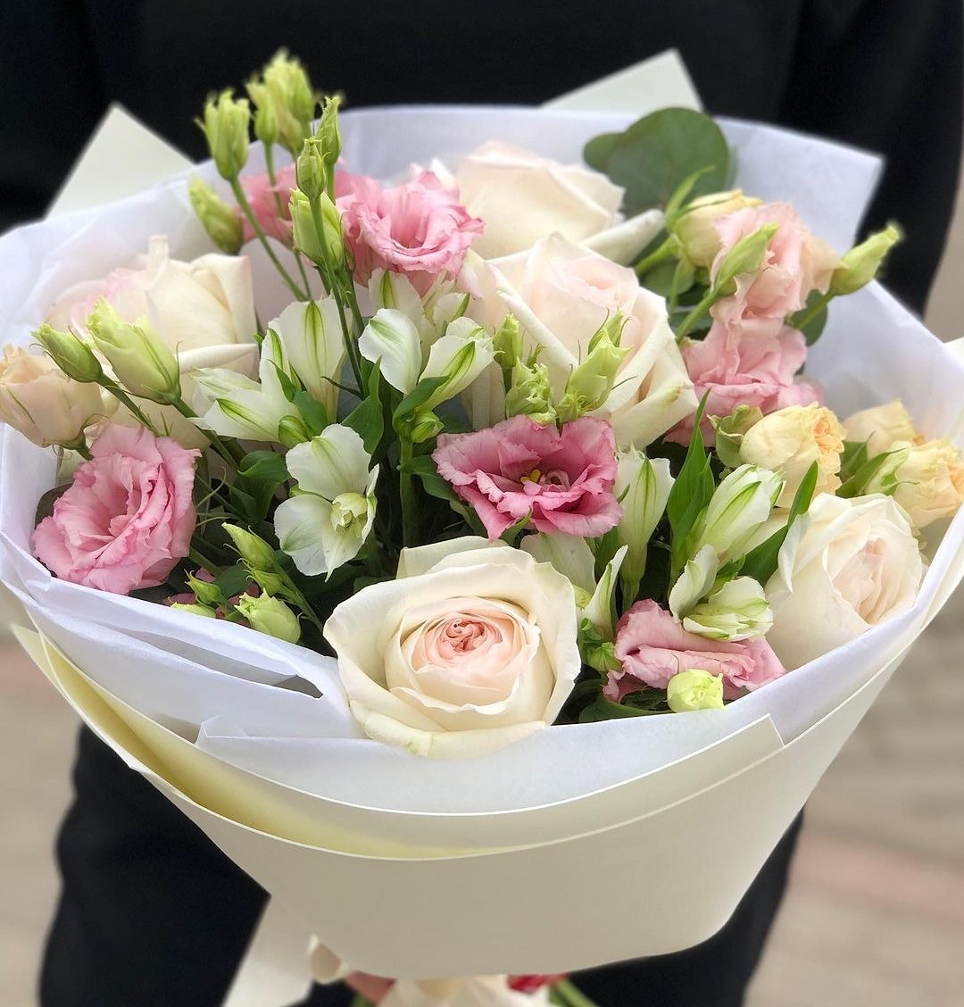 Букет №37 Нежный Букет из Кремовой Розы, Эустомы, Альстромерии и Экзотики