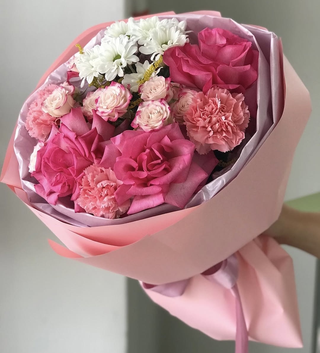 🌷 Французские розы в букете придают утончённость, диантусы добавляют воздушность, а хризантема и кустовые розы создают гармонию и объём. «Очарование» – это универсальный букет для любого повода: дня рождения, юбилея, свидания или просто знака внимания.
