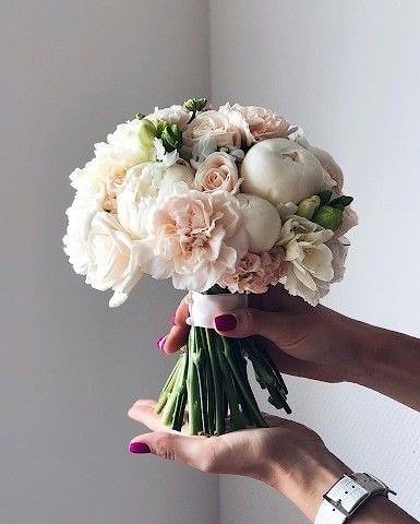Пьоны - цветы изящества и изумления, розы - символ любви и страсти, гвоздики - символ сильной любви и привязанности, а фрезии - символ юного и чистого начала.
