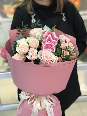 Если вы ищете нарядный букет из роз для девушки, рассмотрите композицию из розы и писташи. Подобное сочетание выглядит очень нежно и обязательно понравится вашему самому близкому человеку. Букет "Лена" из роз у нас на сайте по отличной цене!