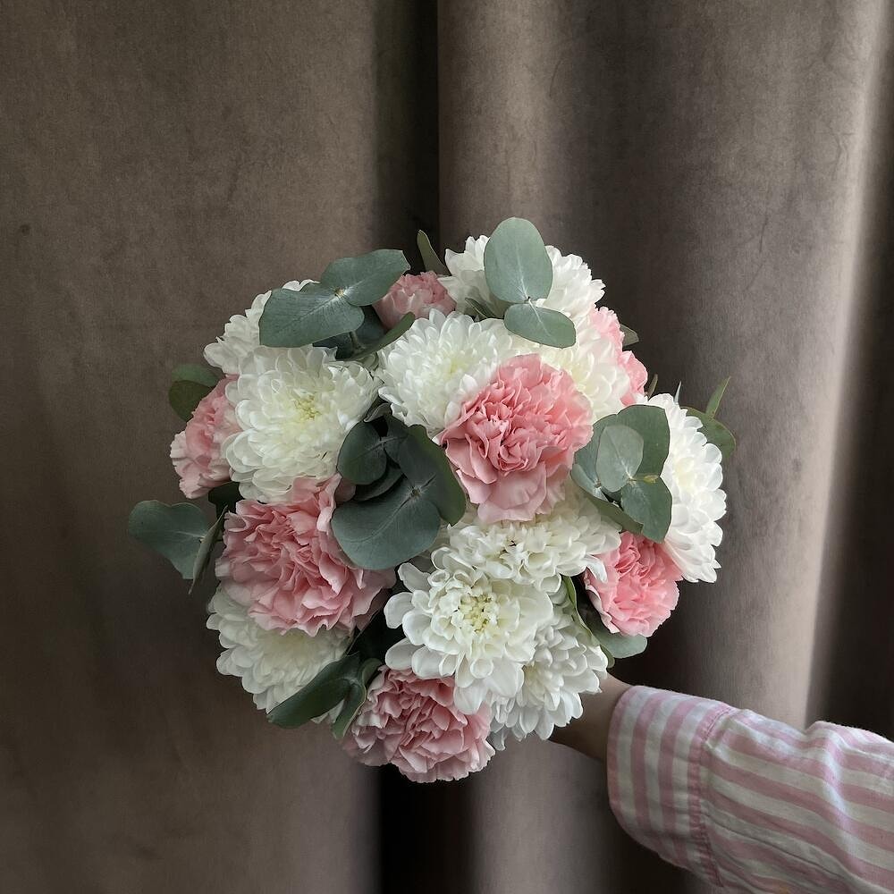Свадебный букет из хризантем и диантусов — нежность, стойкость и стиль в одном образе