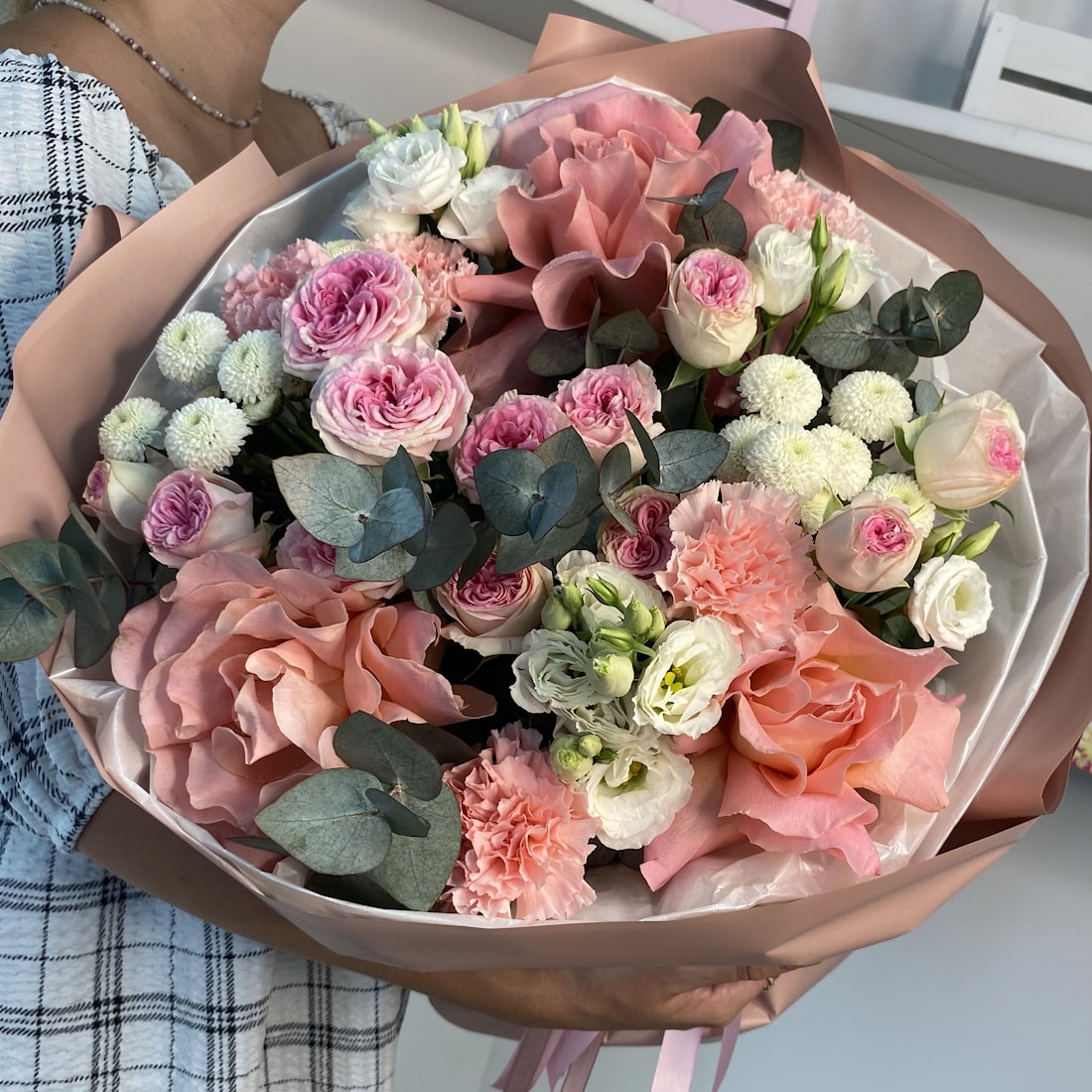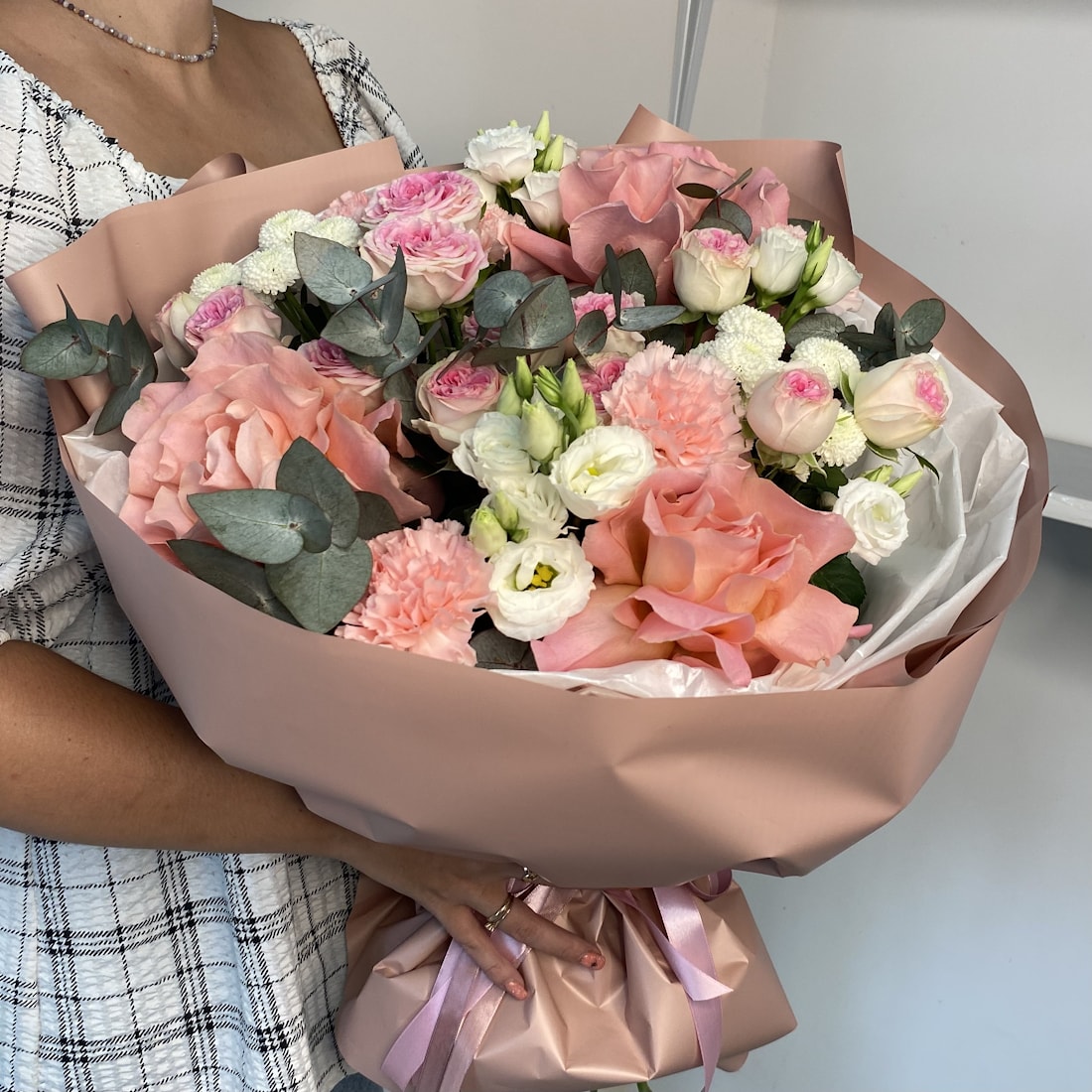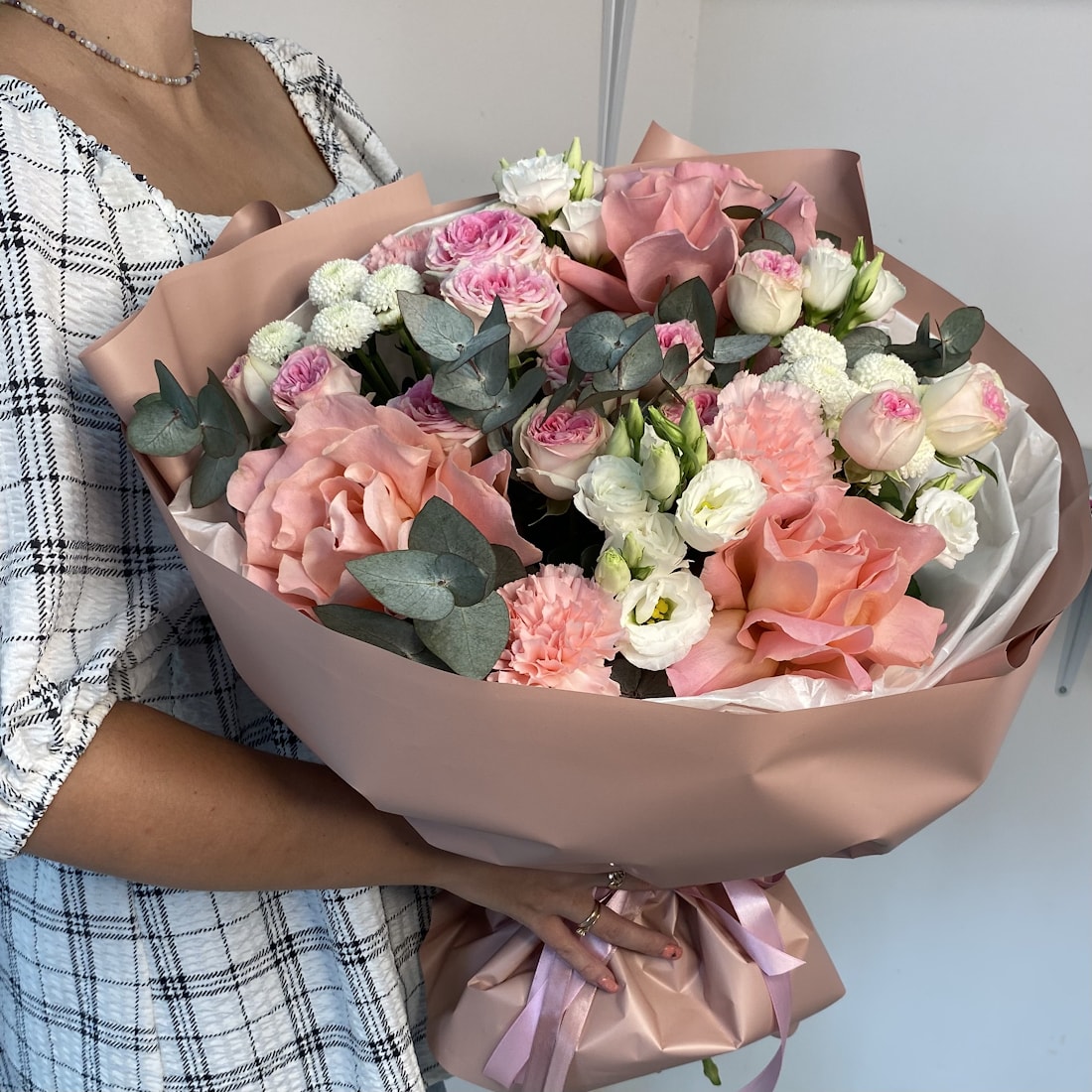 2. Акция! Букет «ТОП» - 3 французские розы, 3 кустовые розы 1 альстромерия. Купить!