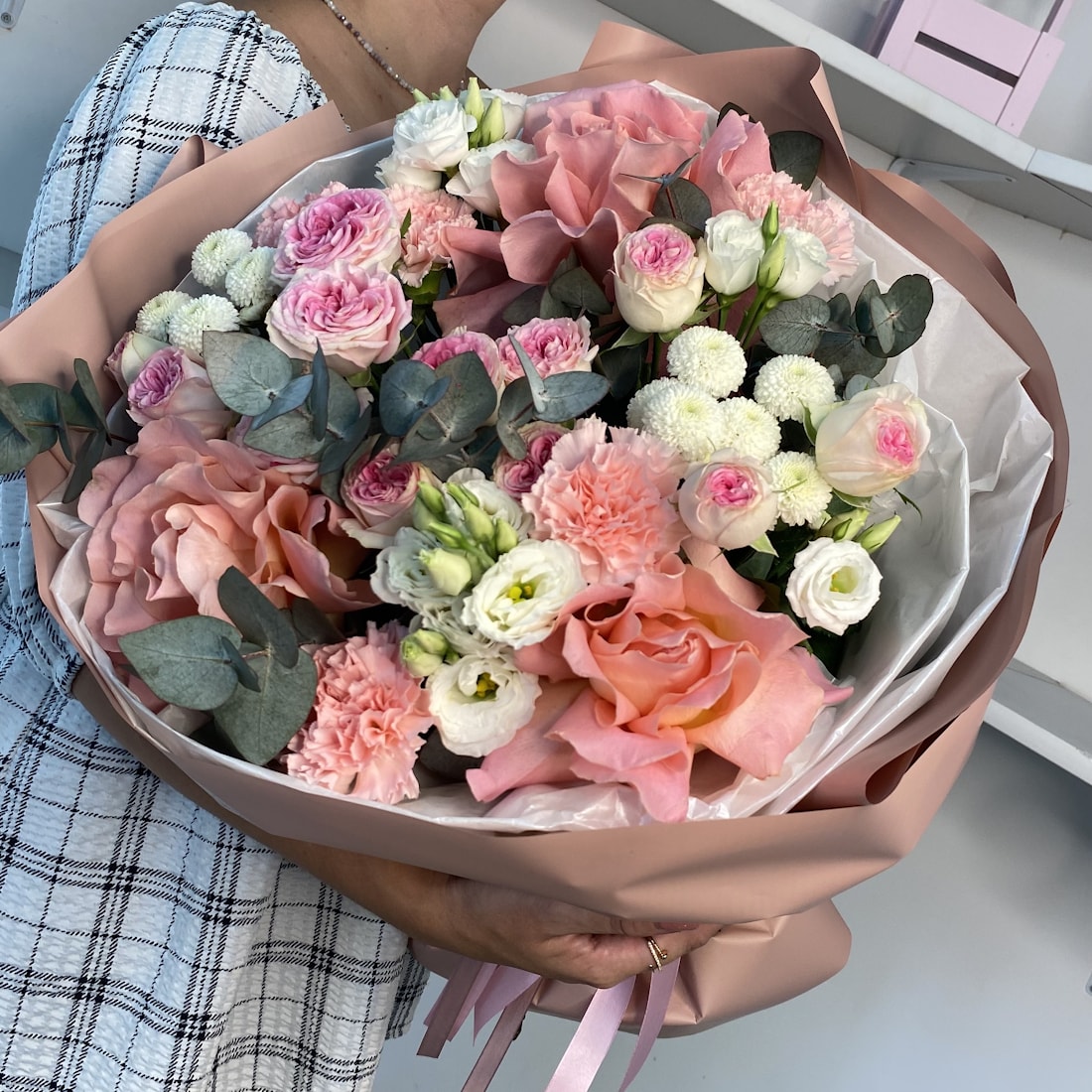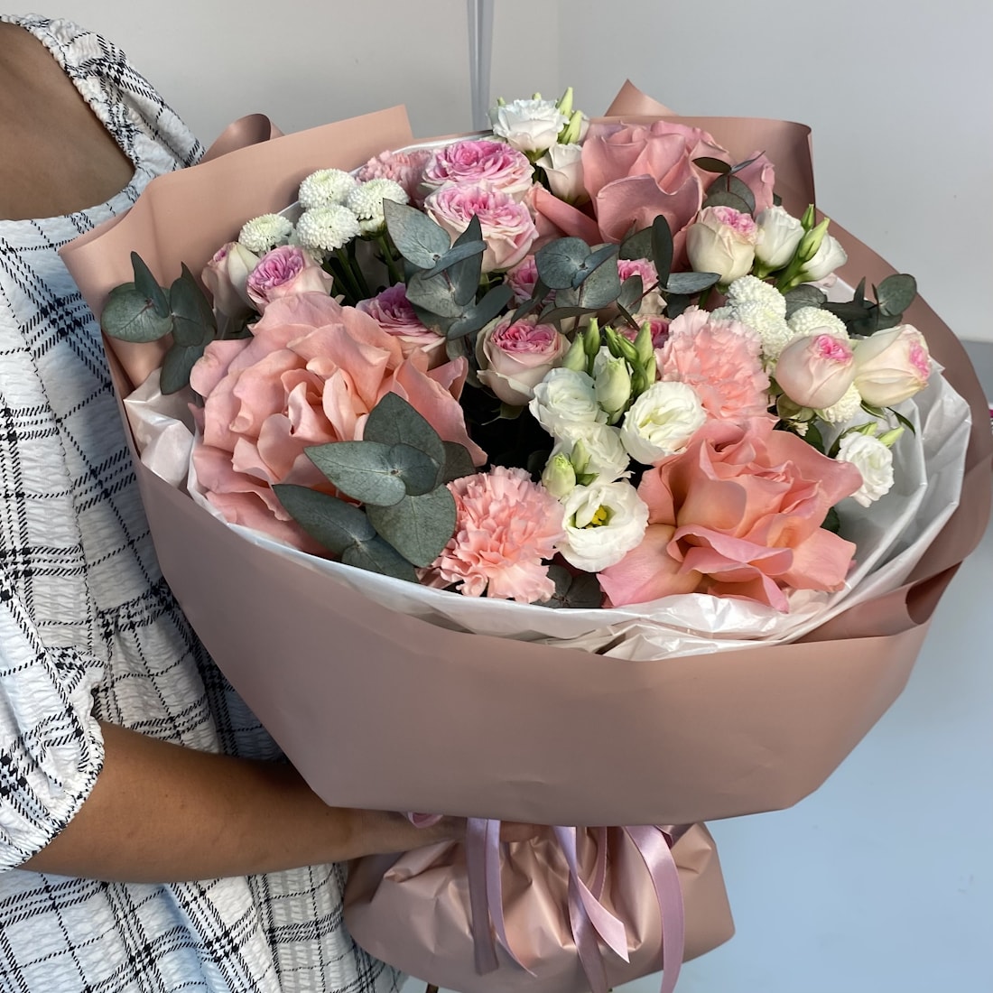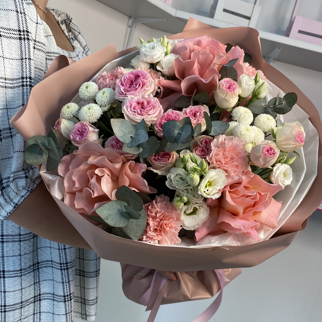 2. Акция! Букет «ТОП» - 3 французские розы, 3 кустовые розы 1 альстромерия. Купить!