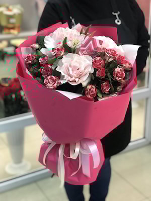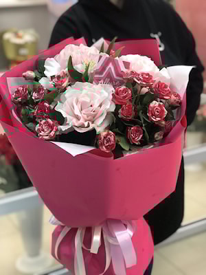 2. Акция! Букет «ТОП» - 3 французские розы, 3 кустовые розы 1 альстромерия. Купить!