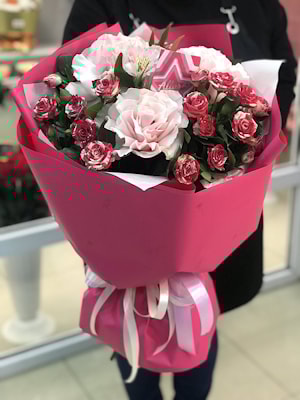3. Акция! Букет «БЕСТ» - 3 французские розы, 3 кустовые розы 1 альстромерия Купить!
