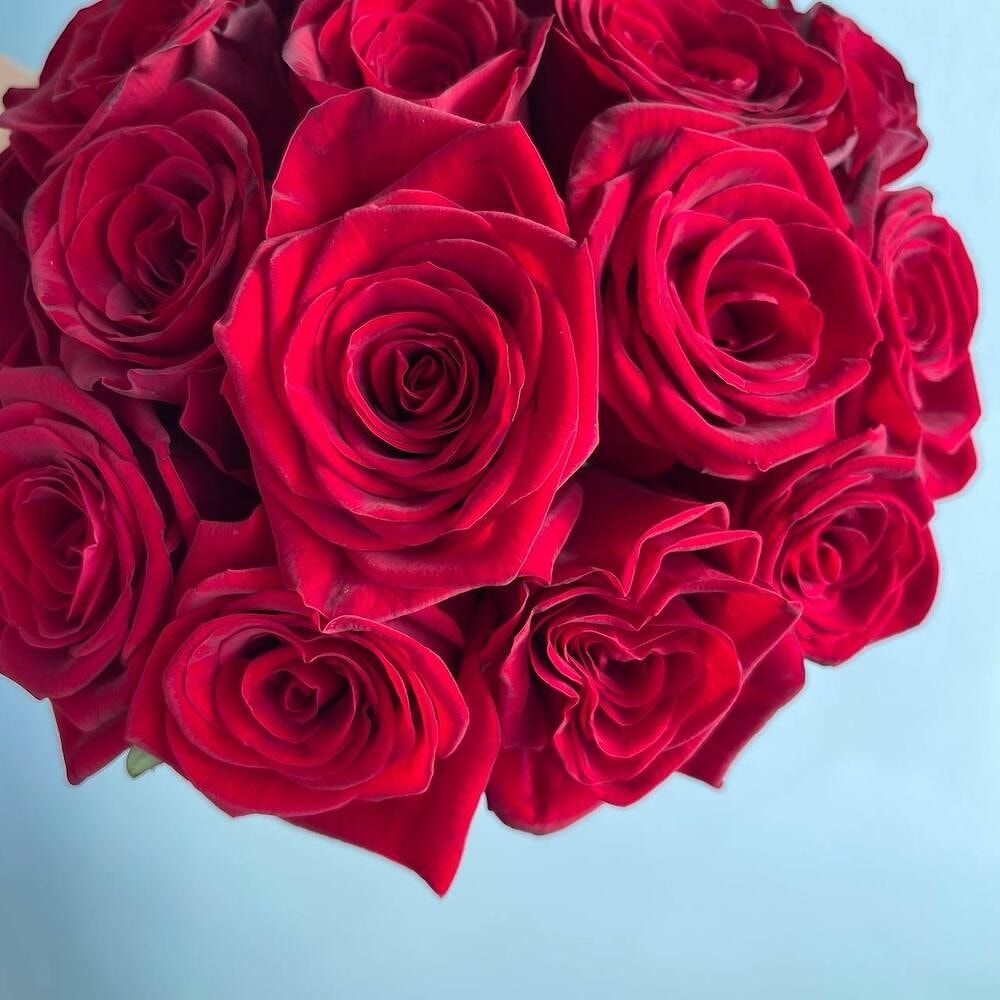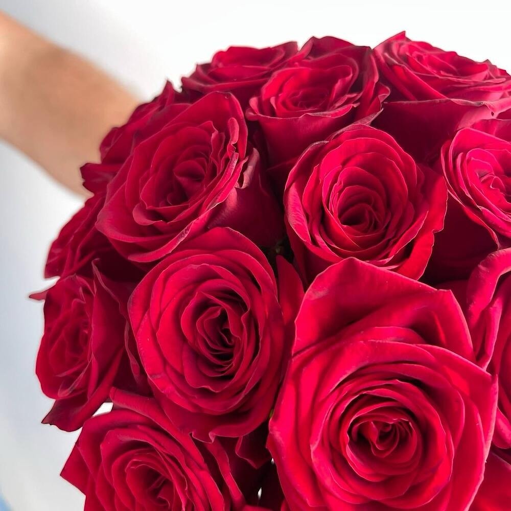 Элегантная композиция создаётся вручную из свежих, отборных роз с бархатистыми лепестками насыщенного оттенка.