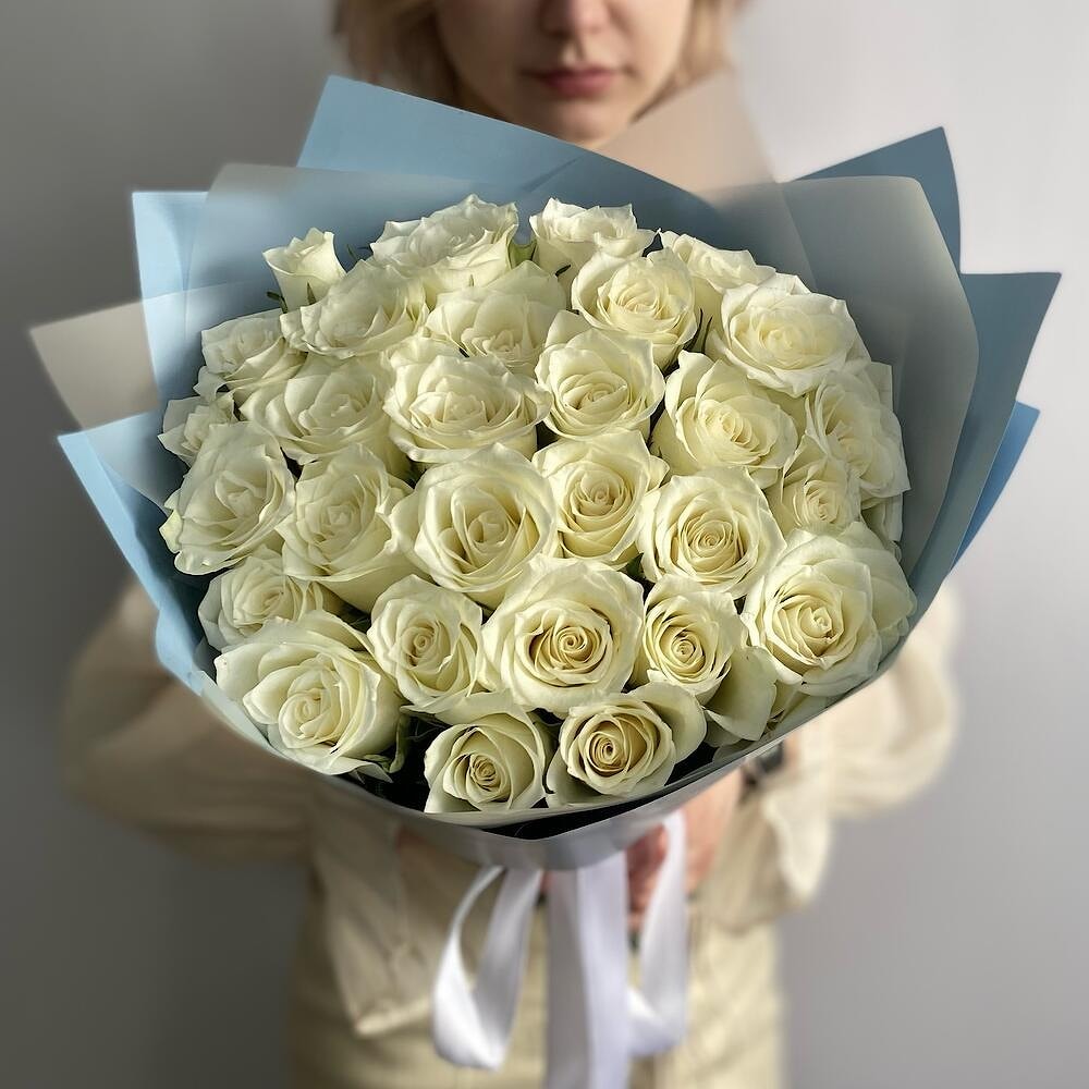 Букет из 29 белых кенийских роз — элегантность и стиль с доставкой в Полоцке и Новополоцке