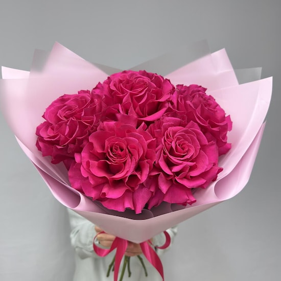 Букет из 5 малиновых французских роз — это сочетание утончённой элегантности и страстной красоты. Каждая роза в букете имеет насыщенный цвет, который словно олицетворяет богатство чувств и глубокие эмоции. Этот букет идеально подойдёт для тех, кто хочет передать свою нежность и восхищение, а также добавить в атмосферу яркий акцент изысканности и романтики. Малиновый оттенок роз придаёт композиции особое очарование, которое не оставит равнодушным.