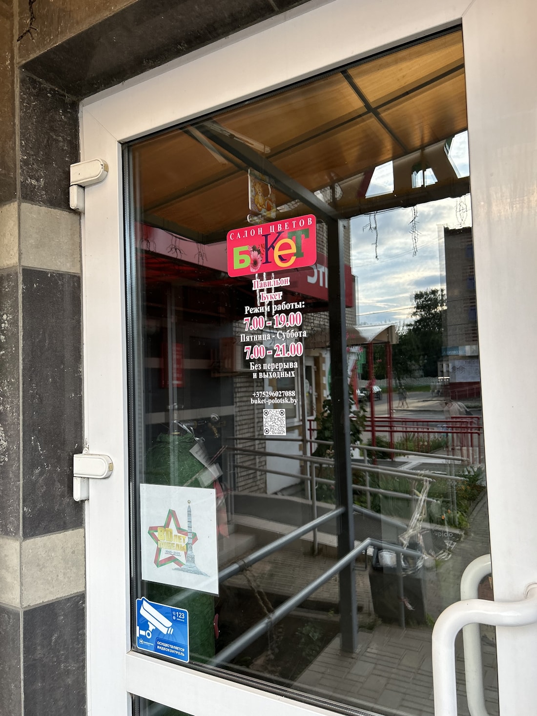 Магазин цветов «Букет» расположен в самом оживлённом районе Полоцка.